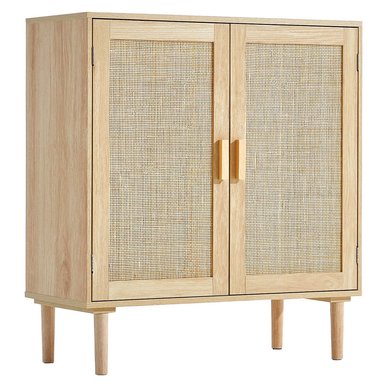 VEVOR Rattan Cabinet, Rattan Storage Cabinet 31.5inch with 2 Magnetic Doors and Adjustable Shelves, Sideboard Buffet Cabinet for Hallway, Entryway