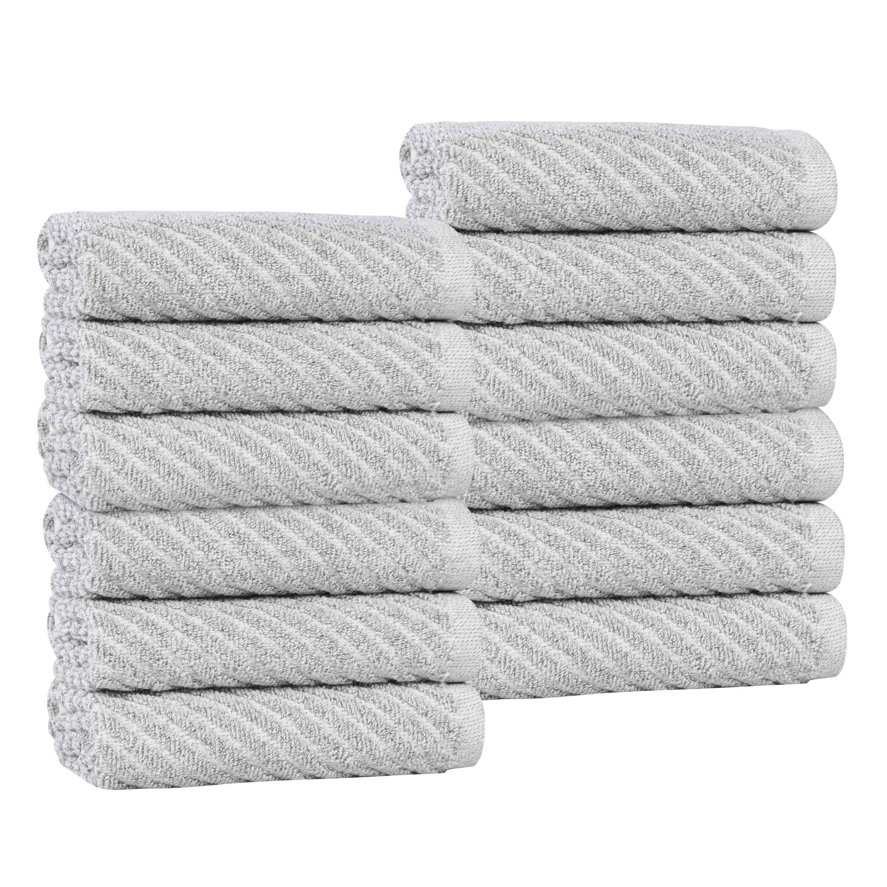 Amelia Cotton Blend Diagonal Ribbed Face Towels Washcloths, Set of 12